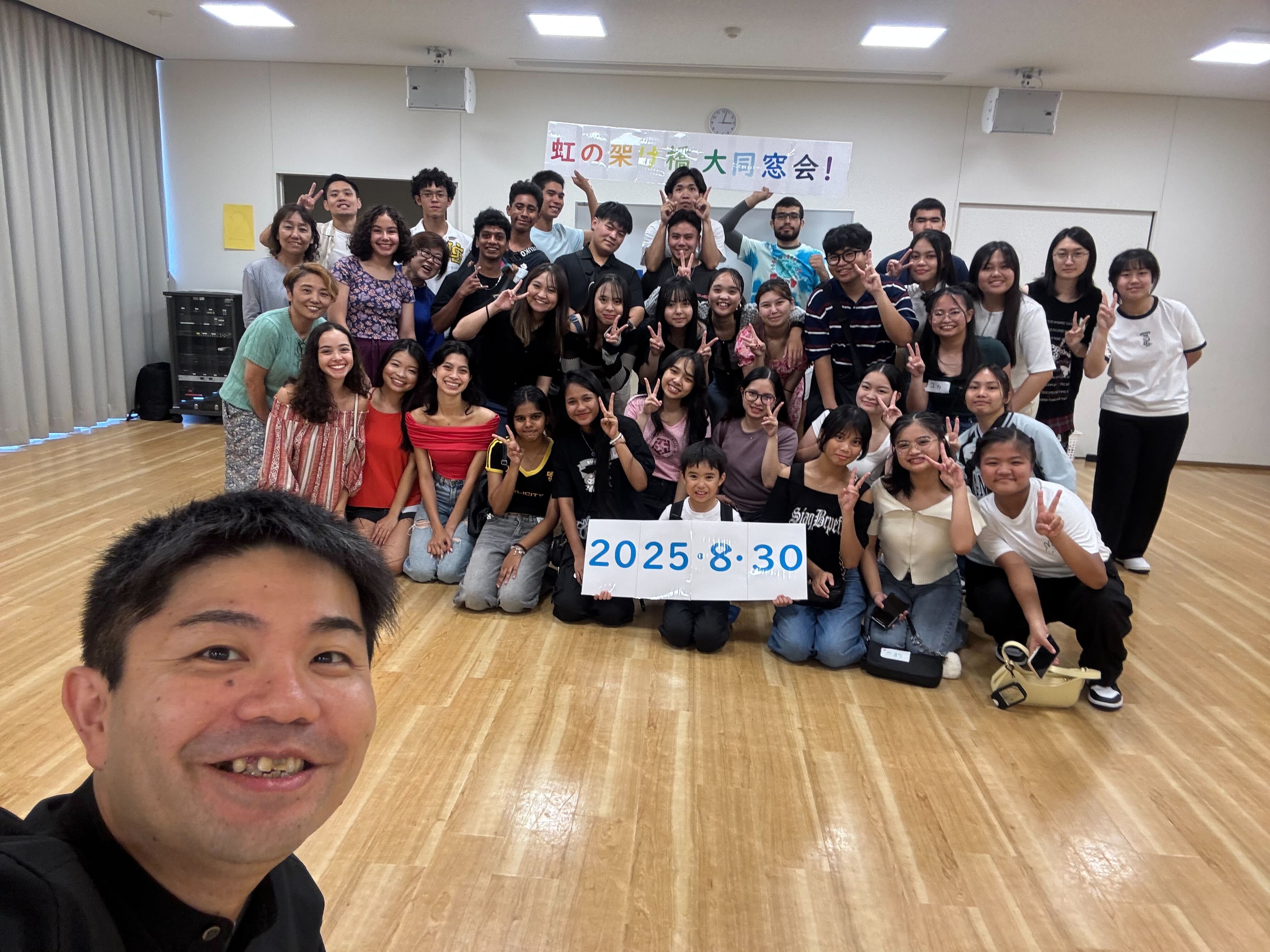 今年の夏に開催したOBOG会にやってきたのは50人近いこどもたち、いや、若者たちが参加しました。すでに就職している子もいれば、現在大学や専門学校に進学している子もおり、国も年齢も関係なく自然と繋がる光景を見て、「虹の架け橋教室があってよかった」と心から思いました。