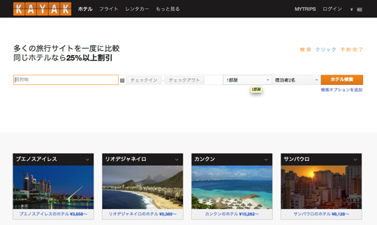 31カ国、現在17言語に対応している「KAYAK(カヤック)」。もちろん日本語で検索できます。ちなみに、海外で人気の旅行サイト「Yapta(ヤプタ)」の航空券検索はKAYAKの検索エンジンを利用しているので、こちらだけ押さえておけば良いでしょう。