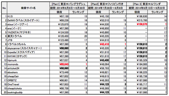 航空券3種類のランキングの総和を元に、最も安くチケットを購入できるサイトを整理すると以下のような順番になります。