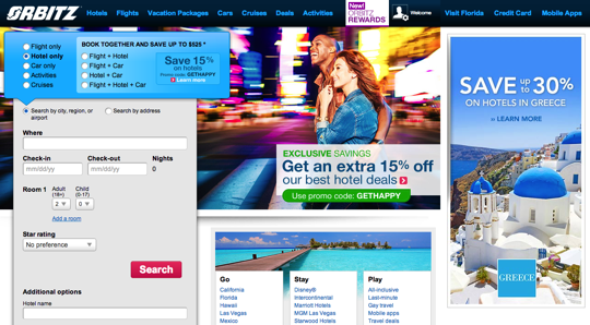 航空券のみならず、ホテルやレンタカーも格安で手配できる「ORBITZ」。航空券やホテルをセットで予約することで、15〜25%オフになることも嬉しい特徴です。ビジネス出張や家族旅行向きのサイトですね。