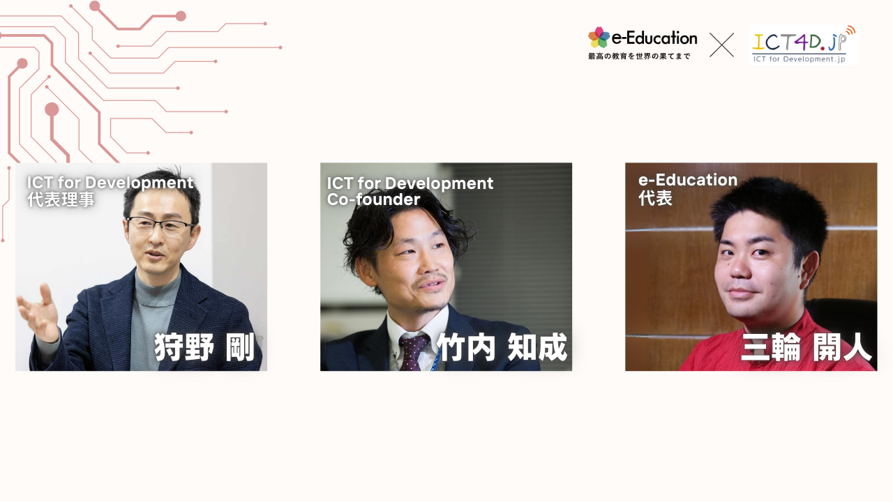 国際協力に関心がある方、AI×教育に可能性を感じる方、そしてe-Educationの今に触れたい方に、ぜひ聞いてほしい内容です。