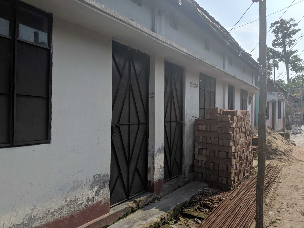 バングラデシュの首都ダッカから船で6時間ほどの場所にあるハムチャー村にあるこの建物にパソコン数台を運び入れ、村に住む生徒32名がここに通い、映像授業を何度も見返し学んでいました。
