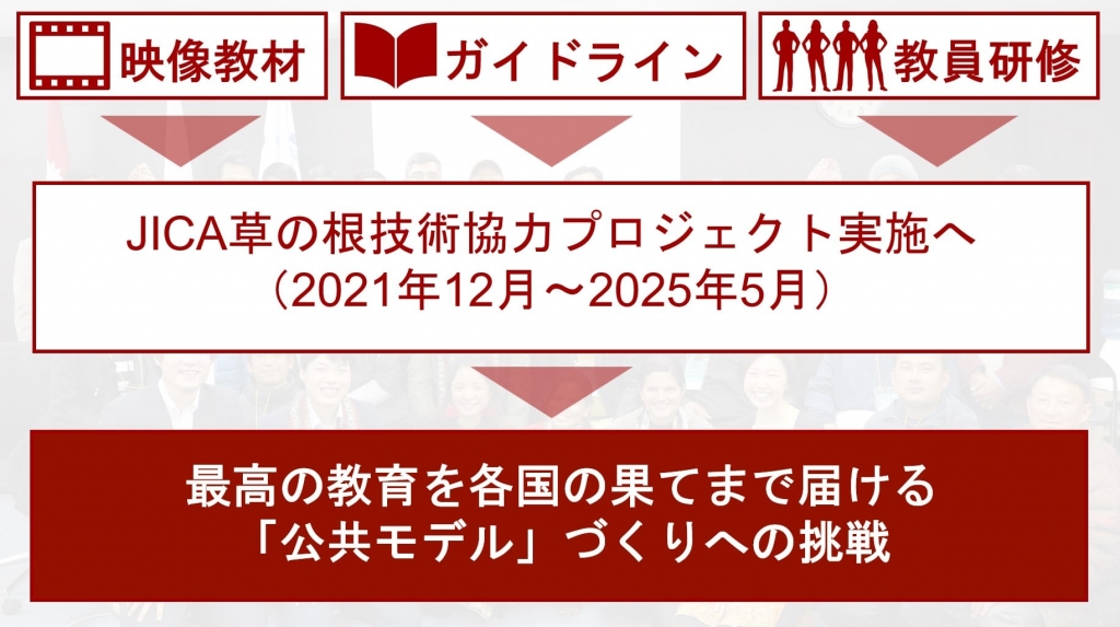 2021年からは現地パートナー団体とJICAと共に、このモデルを全国の中学校に広げ「公共モデル」にする活動を行っています。