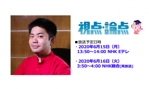 6/15(月)13:50〜NHK Eテレ「視点・論点」に代表三輪が出演します