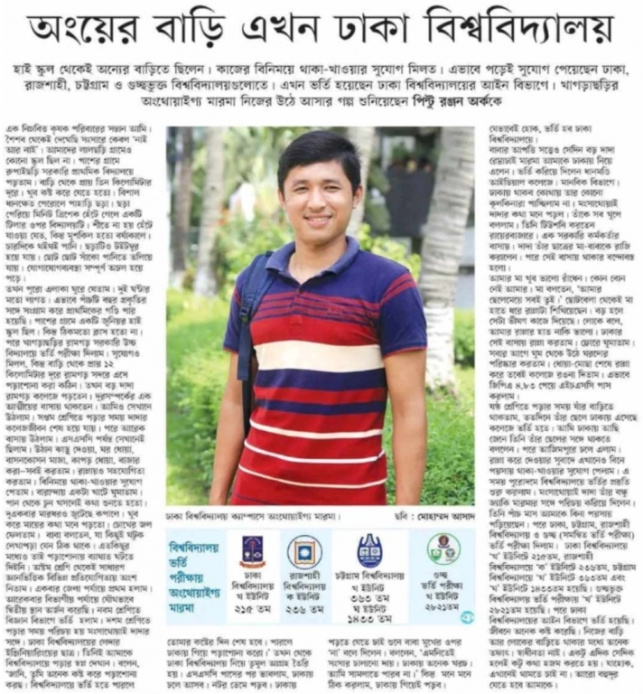 秋も深まり朝夕はめっきり冷え込む様になりました。皆さまお風邪など召されていませんか。本日は、バングラデシュの新聞にも取り上げられた今年のダッカ大学合格者でe-Educationの元生徒オーマルマ・ルドロさんのご紹介と、皆さまへのお願い、最後に寄付金受領証明書に関するご案内をお届けします。