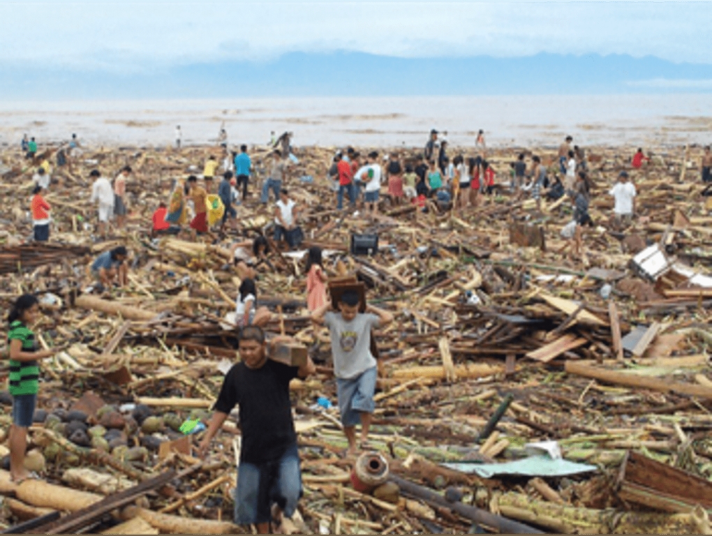 台風により倒壊してしまった家屋とフィリピンの人々
