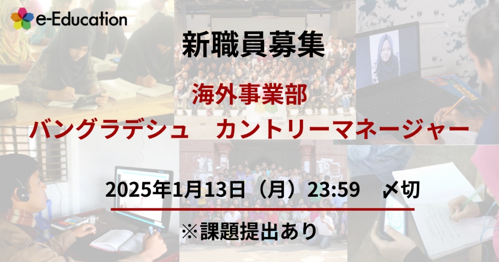 | 職種(採用人数) | グローバル事業部 バングラデシュ カントリーマネージャー(最大1名) |