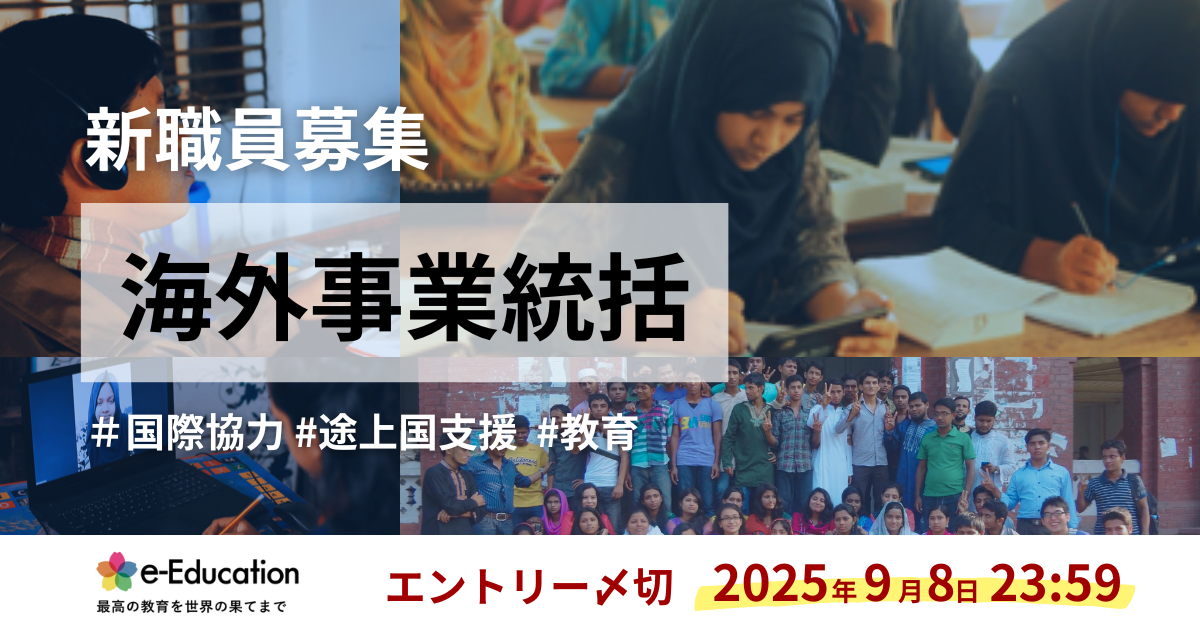 新たなe-Educationの一員として、「最高の教育を世界の果てまで」というミッションのもと、途上国の子どもたちが夢を諦めなくても良い社会に、そして誇りを持って生きていける社会の実現に、一緒に挑んでみませんか?