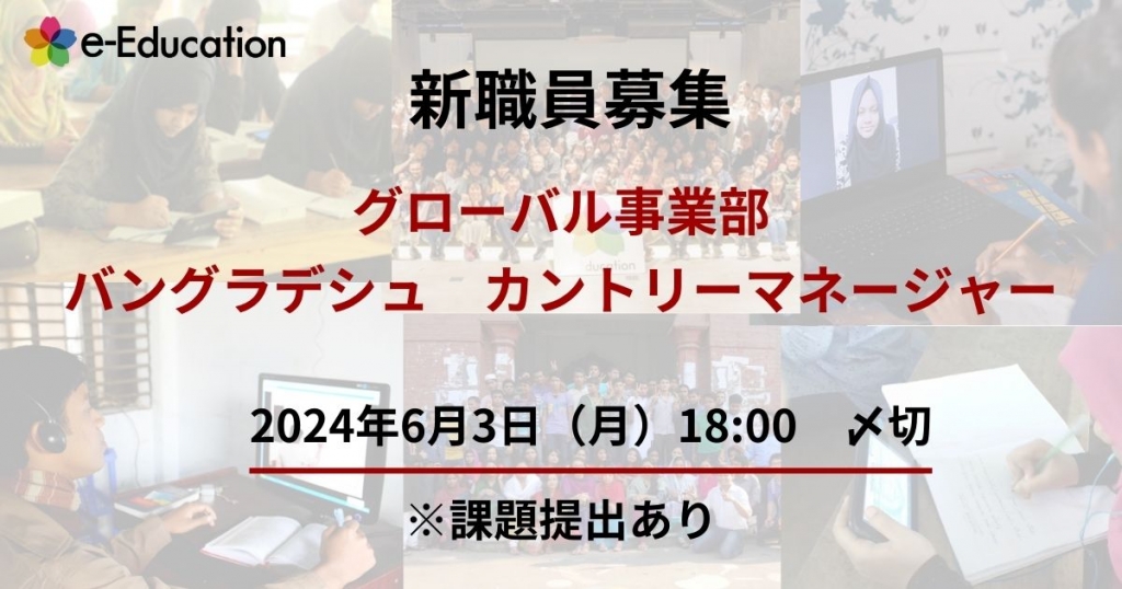 | 職種(採用人数) | グローバル事業部 バングラデシュ カントリーマネージャー(最大1名) |