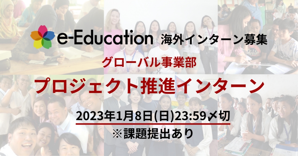 本インターンにご応募、内定となった方には、新たなe-Educationの一員として、「最高の教育を世界の果てまで」というミッションの実現に向かって、私たちと共に様々な活動に挑戦して頂きたいと考えています。